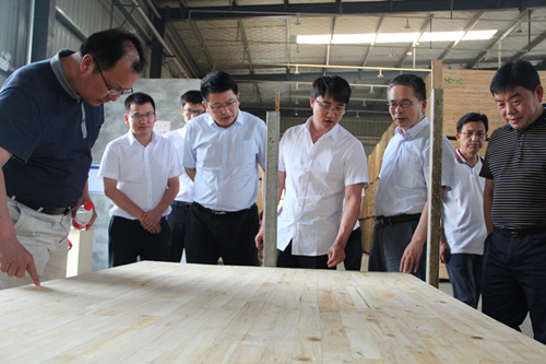 在猇亭区政府党组成员、三峡保税物流中心管理办主任李祥春,区经信局局长刘荣静,宜昌源森木业有限公司董事长谭佳丹等陪同下,陆培祥一行仔细查看了公司展板、成品车间等处。
