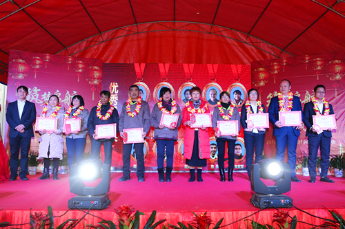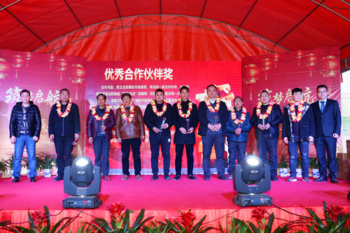 年会现场颁发多个奖项,赵连琼等10人获年度“优秀员工”,高凌飞、尚凤杰荣获年度“最佳新人”,采购部、成品车间热压一班荣获年度“优秀团队”,湖北俏瑞居建材有限公司等18家公司及个人获得年度“优秀合作伙伴”。同时,刘仁烽等12名入职五年的员工参加年会特别设计的感恩环节。