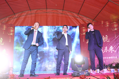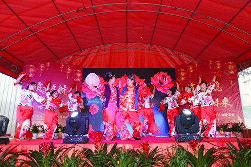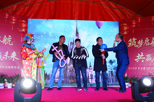 当日下午16时18分,年会在精彩的文艺节目中拉开帷幕,年会现场举行年度总结、先进表彰、主旨演讲等议程,公司员工自编自导多个舞蹈、摇滚等节目,下马槽社区和部分客商代表同时参与文艺节目演出,现场精彩不断、热闹纷呈。